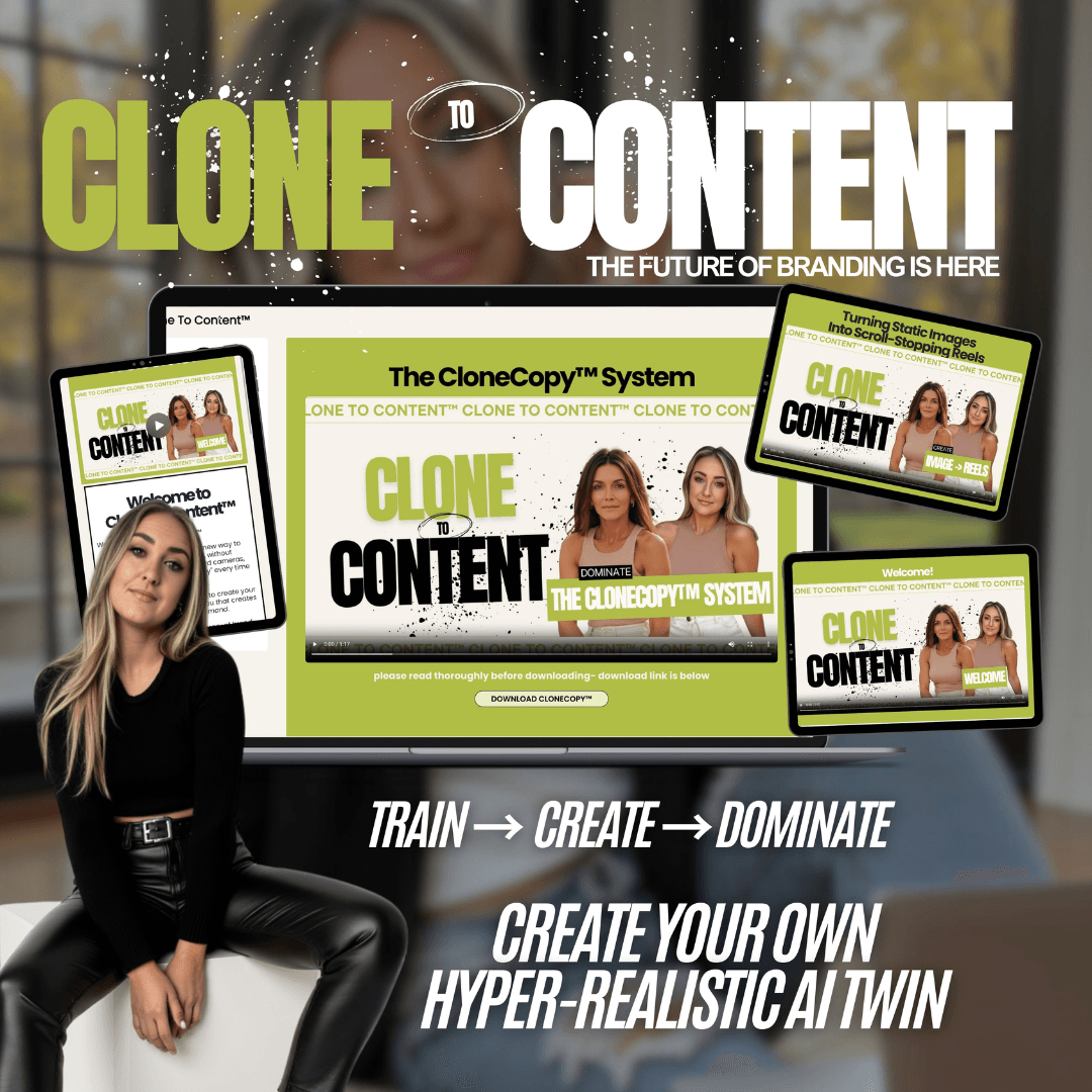 Inside the Clone to Content Vault, youâll create your very own AI twin â trained with your personality, your stories, and your audienceâs pain points.