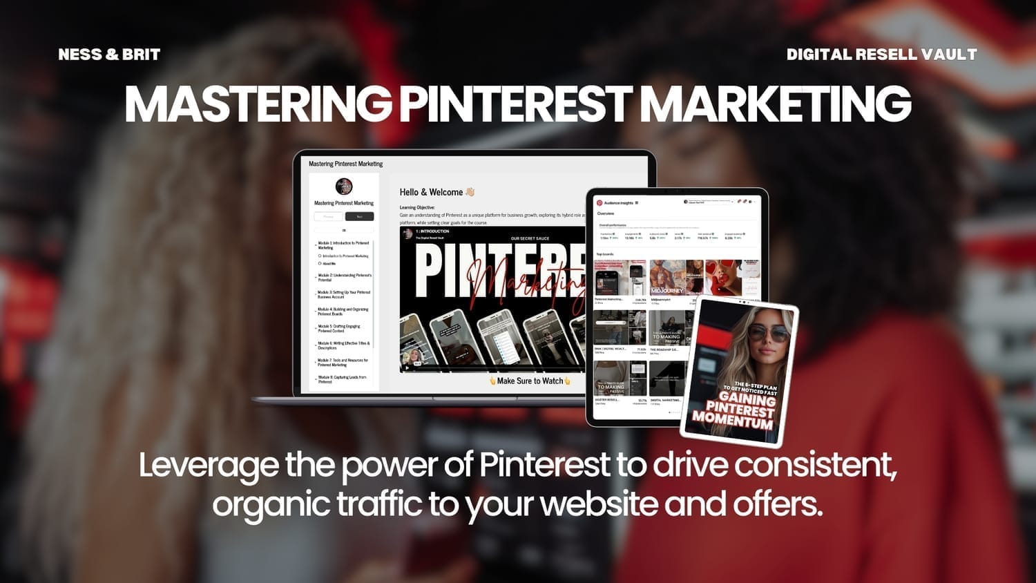 In the Mastering Pinterest Course, you'll learn to drive millions of impressions and thousands of clicks without spending a dime on ads. Turn passive pin views into email subscribers, sales, and long-term growth â all through a proven system built for busy creators.